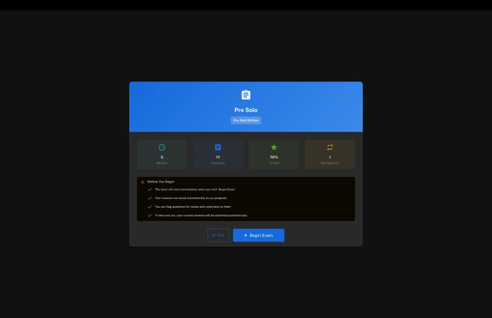 Monitor student milestones, endorsements, and checkride readiness. Full syllabus support and exam features. Built with Part 61 and Part 141 workflows in mind.
